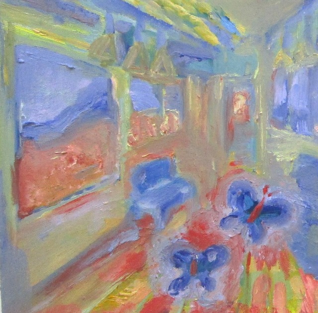 あおいうに 《『戦争!新しい!戦争!新しい!』と幻聴が聴こえた》 2024 F6 キャンバス、油彩